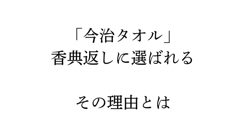 今治タオルが香典返しに選ばれる、その理由とは 「香典返しにタオルを選びたいけれど、どんなタオルが良いのか?…」 そんな悩みを抱えている方も多いのではないでしょうか。 タオルは香典返しの定番品として広く選ばれていますが、特に今治タオルは高品質... -